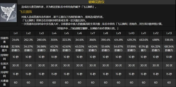 元素爆发会将云堇54.67%防御力(此为9级数值,12级时64.32%)用作提高全队的普攻伤害。如何理解呢?假设你使用的是优菈,在云堇大招的加持下,普通攻击将提高:云堇防御力*54.67%*(优菈暴击伤害+100%)*(优菈的增伤区+100%)*(1-目标抗性)*目标承伤。