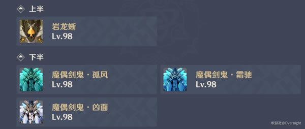12-2的上半为2只岩龙蜥,站位集中,且岩龙蜥攻击性强,只需认准一只攻击即可,无需拉怪,注意要为下半抢时间,第2间的形式类似于之前的无相铁。 12-2的下半为魔偶剑鬼及其分身,它们所造成的伤害一般,血牛钟离完全抗得住,如果没有钟离的小伙伴可能要多带点奶。 打法上,魔偶剑鬼刚开始站为一排,但是它们会立即分开,所以不要在第一波将技能交完,只需要躲技能或者放盾放奶活下去,等它们走近后再使用范围性技能进行攻击,没有盾的小伙伴注意闪避,小心被秒。