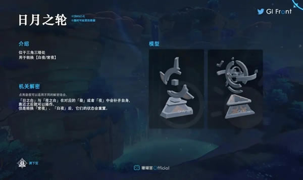 不少建筑内有魔神奥罗巴斯雕像的装饰,不过由于海祇民都随着魔神上到了地表,这些建筑都已经被废弃,成为了古遗迹。似乎提瓦特人都喜欢躲起来暗搓搓发展科技?渊下宫也造出了不少超时代的产物。 日月之轮,位于三角三塔处,可以转化为白夜/常夜,也就是中心那个巨大的人造光源。此外由于地域的特殊性,也衍生出了配套的奇特机关,日之台会在“昼”期间逐渐补全残缺的自身,靠近后可交互解谜。相反的是夜之台,需要在 处于“夜”状态下才会补全。