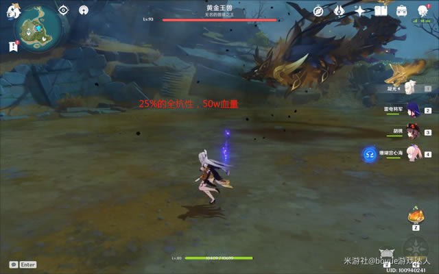 简介:低级的就不说了,就说下93的黄金王兽差不多50w生命值,比雷音权杖会低些,并不算血量很高的boss,但是它的抗性相当高,全属性抗性都达到了25%,所以打它时会感觉dps弱了一些。 不过这boss本身没有什么全免属性,哪怕使用岩属性角色打也是可以的。 总结 熟悉机制后还是挺好打的,对于练度足够的55级以上老玩家基本可以做到1分钟左右击败该boss,打这boss唯一需要注意的就是尽量别被打到,被打到的次数越多,流血buff的累积层数也会越高,掉血也就越快了,而且还是全队一起掉血。 本次分享游戏《原神》攻略。 |