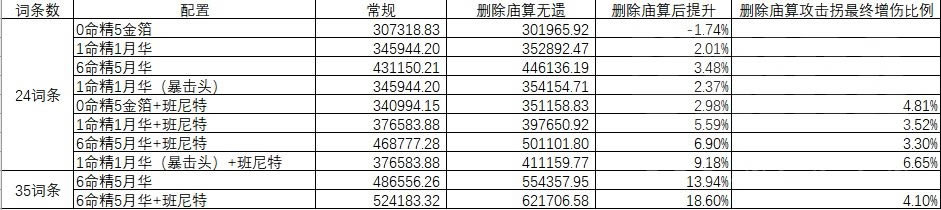 结论: 1.24词条下,无论高命低命,删除庙算无遗后心海输出无显著提升,0命金箔的情况下甚至是负提升。 2.6命5精35词条究极毕业的情况下,删除庙算无遗后心海输出可提升14% 3.攻击拐对心海的伤害提极低(相对于其他角色),只有10%左右,且练度越高收益越低。删除庙算无遗后,心海吃攻击拐的收益有提升,但不显著,仅3%~6%左右,攻击拐仍是收益极低的(相对于其他角色)。除攻击拐以外的其他拐(增伤/减抗/减防等)只会放大数值,有无庙算无遗对吃拐率没有影响。 ? 个人看法: ... 1.对于绝大多数玩家(低命小毕业)玩家来说,“庙算无遗”仅从伤害输出上来讲也不能算是“负收益天赋”,如果考虑奶量和血量,则确定为正收益天赋。 2.“庙算无遗”天赋的设计是典型的“策划教你玩游戏”系列,如果无此天赋,大量打输出的玩家肯定会去堆双爆,然而在绝大多数情况下这样做提升不了多少输出,反而降低了血量和奶量,得不偿失。或许我们真的误解米哈游了 3.“庙算无遗”确实限制了心海的上限,但不是主要限制因素,主要因素是心海的技能模组和生命转伤害机制,该机制相当于给心海加了一个8000~12000攻击力的攻击拐,导致心海吃攻击拐的收益极低。 本次分享游戏《原神》攻略。 |