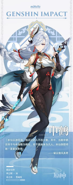 申鹤本是驱魔世家旁系之子,出于一些原因被留云借风真君收养。 对申鹤来说,留云借风真君是一位博学健谈的师父。 对留云借风真君来说,申鹤也是她指点过的人类中最特别的那个。 以人类之身与仙家一同生活并非易事,但申鹤体质特殊、意志过人,又极有仙术天赋,很受众仙家认可。不过,长年累月修行加上吃仙草、饮山露的生活习惯,让她离人间的生活越发遥远,甚至被当成过神秘的白发仙人。 性格中偶然流露出的锋芒与身上绑缚的红绳,也为她的「神秘」再添一笔。若把她的过去写成故事,想必会有多个版本。 天上仙女也好,白发魔头也罢,人们将如何看待这个神秘的女子?而掩藏在她身上的秘密与真心,也如山间云雾一般难以捕捉。 本次分享游戏《原神》攻略。 |