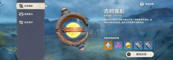 《原神》是由上海米哈游网络科技股份有限公司制作发行的一款开放世界冒险游戏,于2017年1月底立项,原初测试于2019年6月21日开启,再临测试于2020年3月19日开启,启程测试于2020年6月11日开启,PC版技术性开放测试于9月15日开启,公测于2020年9月28日开启。 原神古时孤影第一阶段的活动已经开启,部分玩家可能还不清楚怎么做,下面一起来看看原神古时孤影第一阶段攻略吧。 原神古时孤影第一阶段攻略 〓活动时间〓 活动玩法开启时间:2021/11/05 10:00 ~ 2021/11/15 03:59 「自律机关能源研究·结论」任务时间:2021/11/15 04:00 ~ 2021/11/18 03:59 〓参与条件〓 冒险等阶≥30级 且完成魔神任务「于狱中绽放之花」 〓玩法简述〓 「古时孤影」活动分为「前期」、「中期」、「终期」三个阶段,需要旅行者们完成不同的挑战任务。各阶段将随着活动时间的推进逐步开启。