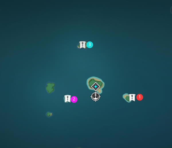 紫色为“收集微粒” 橙色为“限时开启宝箱” 蓝色为“限时击败敌人” 红色为“引爆炸药桶” 鹤观主岛挑战点位
