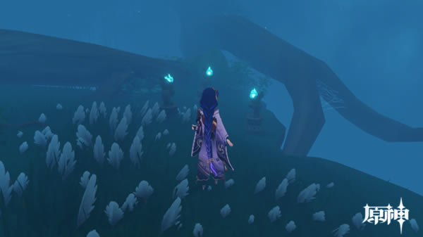 白灯和雷灯,雷灯需要触发,图里就是没触发的,最后迷失了 4.这里需要供奉栖木,只是任务需要,能驱散雾,主线必做 任务流程,接触栖木,分散成羽毛,找到羽毛(羽毛可以使用元素视野),回到栖木处,雾就散了 这里以知比山为例 入口处三个仙灵有机关,水位会下降,跟下去有遗迹