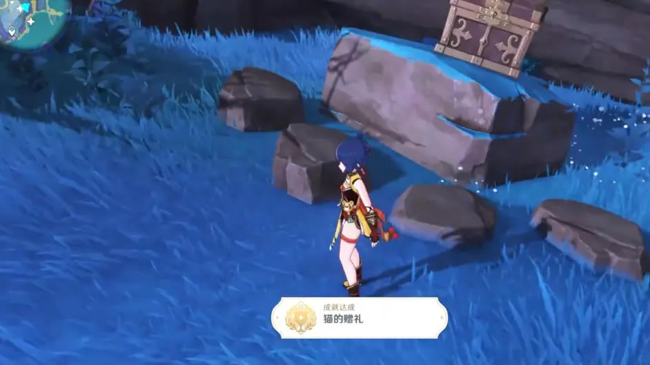 当第4天任务完成后别急着下线,来到地图上圈的这个点,找到一块由石头组成的猫爪子。这儿会刷新出一只猫和一个饭盆,来到此处投喂制作的活力喵饭。每天喂一次,一共需要投喂4天。第4次投喂时会解锁隐藏成就——猫的赠礼,并获得一个珍贵宝箱。 本次分享游戏《原神》攻略。 |