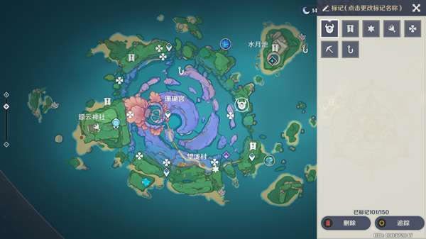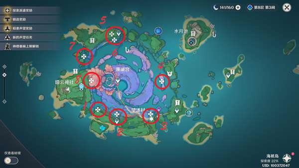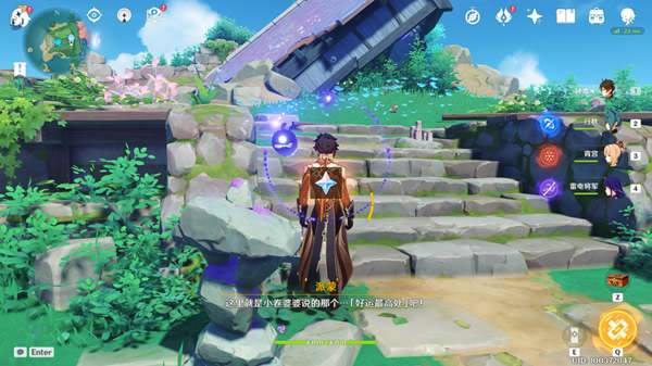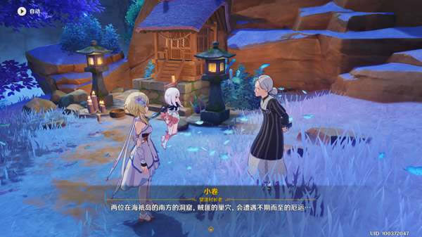 (2)与小卷交互即可 (3)之后去神社取饱含心愿的水 (4)需要在120秒内返回,不能传送,时间很充裕,不必着急 (5)再去洞窟取水,位于瀑布旁
