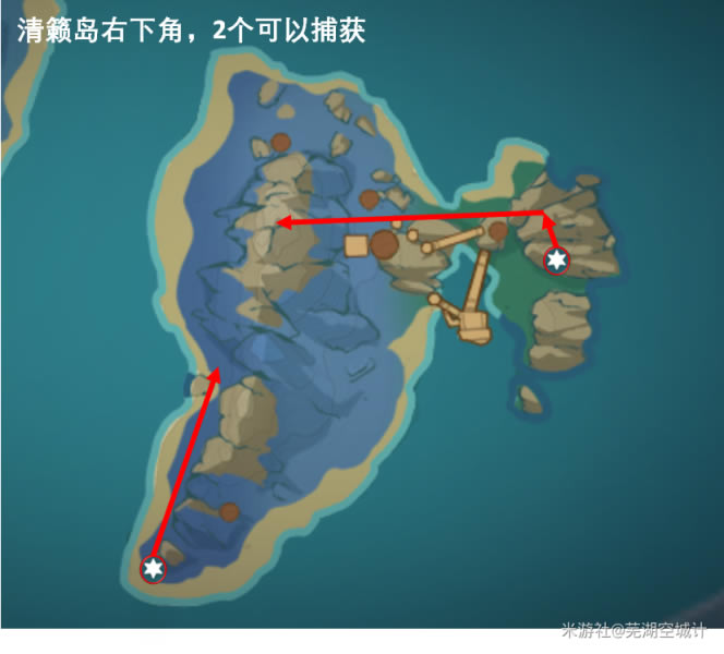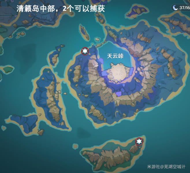 第三部分是清籁岛右下角,右手侧这个雷灵需要通过一个【雷传送门】去追赶,事实上解起来挺快乐的。 海祇岛(6只+2只):