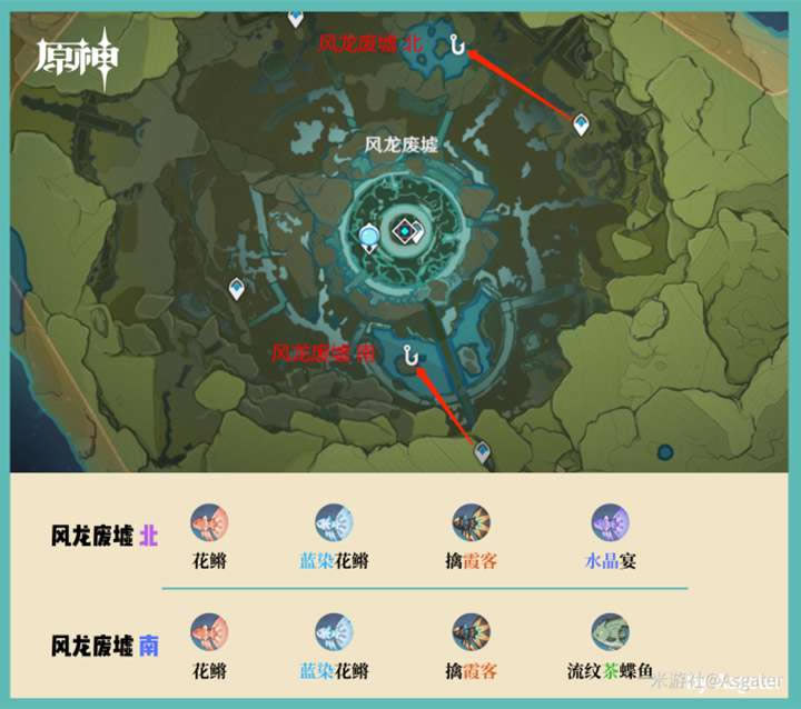 (风龙废墟北、南钓点标记路线及鱼类) 4、龙脊雪山