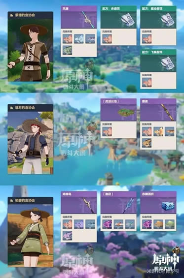 《原神》是由上海米哈游网络科技股份有限公司制作发行的一款开放世界冒险游戏,于2017年1月底立项,原初测试于2019年6月21日开启,再临测试于2020年3月19日开启,启程测试于2020年6月11日开启,PC版技术性开放测试于9月15日开启,公测于2020年9月28日开启。 原神2.1版本中的渔获可以通过钓鱼玩法来获得,部分玩家可能不太清楚,下面一起来看看原神渔获快速刷取指南吧。 原神渔获快速刷取指南 把如何兑换每个钓鱼协会最高奖励所需要的材料告诉各位