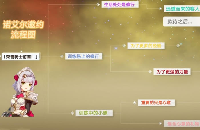 《原神》是由上海米哈游网络科技股份有限公司制作发行的一款开放世界冒险游戏,于2017年1月底立项,原初测试于2019年6月21日开启,再临测试于2020年3月19日开启,启程测试于2020年6月11日开启,PC版技术性开放测试于9月15日开启,公测于2020年9月28日开启。 原神中诺艾尔邀约是很多玩家关注的重点,本次就为大家带来了原神诺艾尔邀约全结局流程图文攻略,非常全面的内容,想了解的朋友可以参考,希望能帮到大家。 诺艾尔邀约全结局攻略