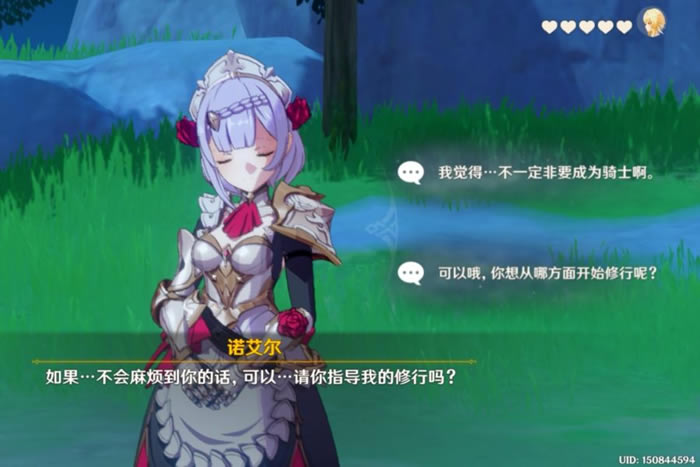 【剧情三】为了更多的经验(训练之路1) 当诺艾尔拜托你指导她的修行时,选择「可以哦,你想从哪方面开始修行呢?」