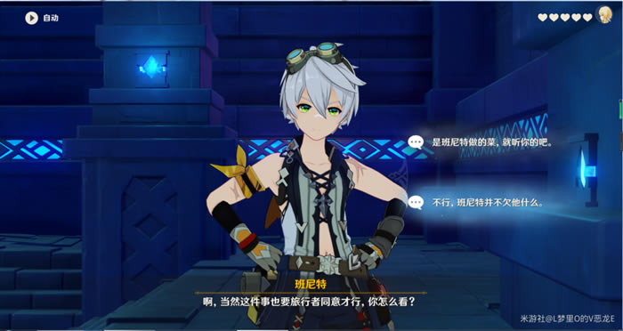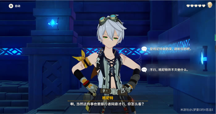 这里作者选择第一个,后面就给班尼特材料,然后去到秘境里