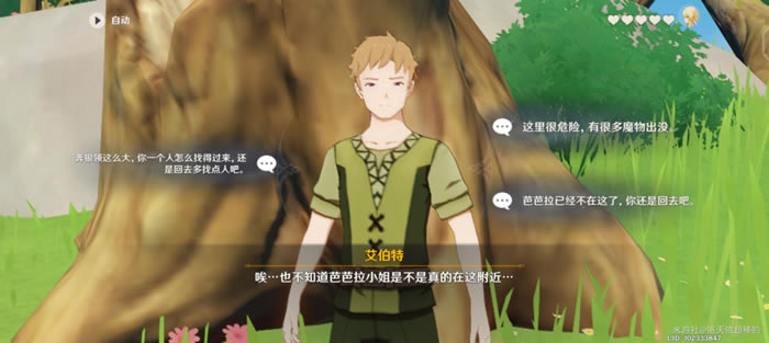 找到艾伯特先生,选项选择【这里很危险,有很多魔物出没】