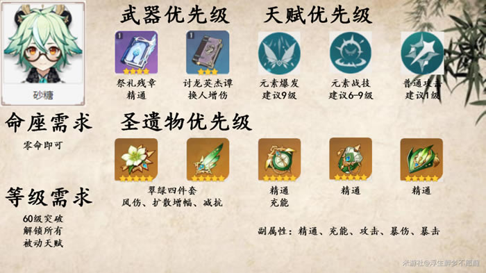 当班尼特能量不足时,可以省略班尼特元素爆发 破盾选择 需要工具人时,首选替换砂糖,其次班尼特,注意提供容错的回复是必需的 角色培养选择