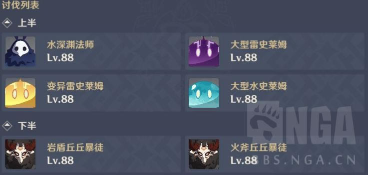 11-1,这一层我暂时没见过群友11-1没满星,纯练度关卡,没什么技巧 上半层雷+水史莱姆+水深渊法师,下半层3火斧+3大岩盾 岩盾讲一下吧,岩盾8种破法:1、岩属性攻击 2、大剑(可莉)硬打 3、雷火超载炸盾 4、下落攻击(魈刻晴温迪) 5、嘲讽绕背 6、冰冻 7、感电 8、离岩盾远一些,然后等待它冲锋后攻击背部
