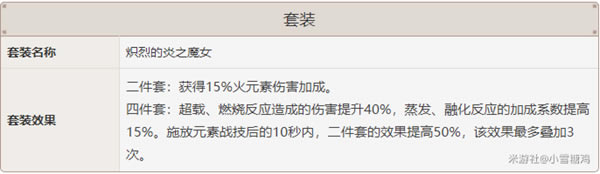 *由于血梅香伤害属实不高,暂不考虑血梅香的提升 从图表可以看出但从天赋来说普攻重击提升 > 大招(包括倍率、回复) E技能单级提升虽然最小,但E技能提升可以带动普攻/大招的提升,所以优先级依旧最高。 主普攻重击的玩法: E > 普攻 > Q 大招核弹的玩法: E > Q > 普攻 关于胡桃配装 Q4 | 胡桃圣遗物堆生命/攻击哪个收益高?生命值。 胡桃的基础攻击力非常低,但基础生命值非常高,基于E技能可以将生命值上限转化为攻击力的特性,计算每1%生命值和1%攻击力带来的攻击力提升即可得知结果 生命值:15552 x 1% x 5.66% = 8.8(90级胡桃 | 8级天赋) 攻击力:(106 + 674 ) x 1% = 7.8(90级胡桃 | 90级和璞鸢) *选择和璞鸢的原因是和璞鸢的面板攻击更高,更接近生命值提升 可以看出每1%生命值带来的攻击力提升比每1%攻击力带来的提升更大,因此胡桃的时之沙更推荐选择生命值(打反应的玩法可以选元素精通沙漏,此处暂不考虑) 副词条优先级:暴击暴伤 > 生命值百分比 > 攻击力百分比 Q5 | 最适合胡桃的圣遗物是什么?打反应流派:魔女4件套 不打反应流派:渡火/流星 *关于玩法流派详见Q8 关于打反应流派: *此时沙漏可选元素精通 首选:魔女4件套 简评:虽然只能吃22.5%的火元素伤害加成,但蒸发融化反应伤害系数提高可以增加元素反应的伤害提升。