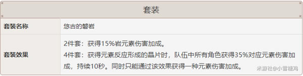 磐岩4件套 简评:带阿贝多或钟离,胡桃捡晶片加火伤。缺点是打自带元素附着的敌人时比较吃亏。这是我的私心,我觉得可以这样玩,但我还没试过,仅给大家提供个思路。