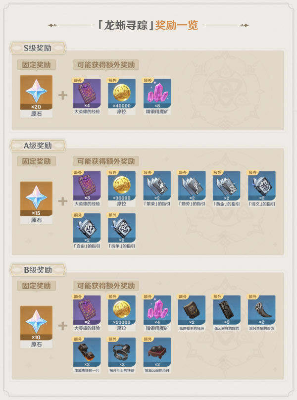 别着急,这样的米式限制后面还有。每个派遣任务除了固定的原石奖励外,还有额外奖励(精炼矿、经验书之类的),想要拿到所有奖励就需要多上角色堆成功率。根据可靠消息是60级以上角色才能有效增加成功率,而普通玩家根本没有那么多角色,而且“龙蜥寻踪”派遣和普通派遣是不能共用角色的。