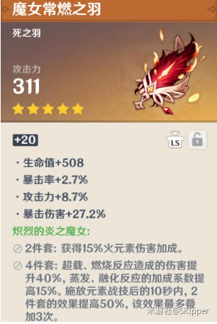 这套适合,不参与元素反应,组双风双火的大世界割草队伍,你看这35%加伤的**乘区,就和甘雨带乐团套是一个概念。 魔女4件套,也非常好用,之前有养卢老爷的小伙伴直接拔下来就行了