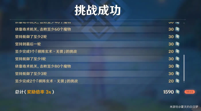 但按照下面的教程和一定的手法,相信大家一定能一遍过的! 在这一次中,我一共选择了两次无畏挑战,都很轻松的通关了,只要我们选择了1~2次无畏,我们都可以轻松打满奇数点(1590)。 本次角色选择:优先推荐:莫娜、菲谢尔、迪卢克、钟离。