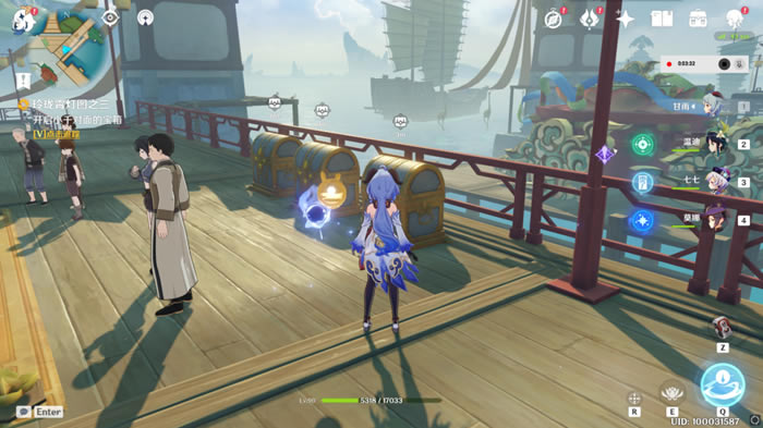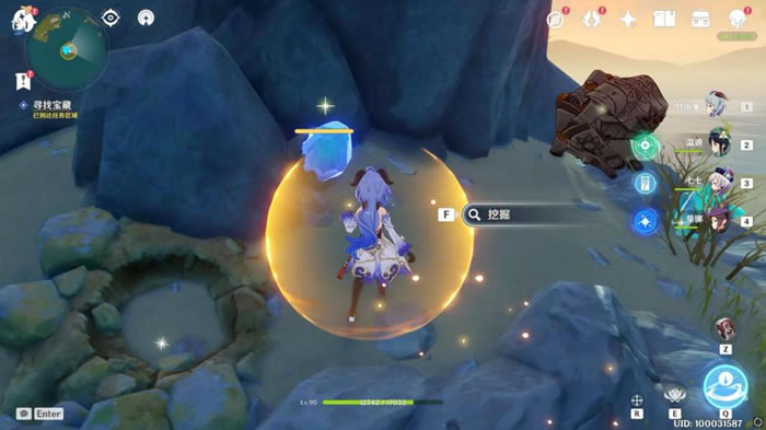 到达指定位置附近依旧会有一盏霄灯作为提示,同时地上会有非常明显的挖掘痕迹,还有一只处于沉睡状态的遗迹猎者(你说这不是冒险家协会放置的我都不信),走到挖掘点附近挖掘宝藏后遗迹猎者就会苏醒,可选择击败或直接逃走脱离战斗。 找完三个宝箱后回到璃月港与小千对话,对话完之后我们便可开启后面垂涎已久的三个华丽宝箱了。(这仨宝箱可真馋死我了。。。)