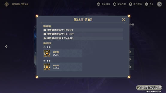 《原神》是由上海米哈游网络科技股份有限公司制作发行的一款开放世界冒险游戏,于2017年1月底立项,原初测试于2019年6月21日开启,再临测试于2020年3月19日开启,启程测试于2020年6月11日开启,PC版技术性开放测试于9月15日开启,公测于2020年9月28日开启。 原神1.3是很多玩家关注的重点,本次就为大家带来了原神1.3最新深境螺旋攻略,也是深境12层全方位玩法指南,非常全面的内容,想了解的朋友可以参考,希望能帮到大家。 整体难度总结1.相较于前两个版本(2020;2021.1)更加考验生存(护盾厚度、奶量、抗打断) 2.想要满星,更加考验输出。 3.抗打断非常重要:行秋、钟离、diao娜等护盾手高光。 4.强控制角色和永远动流,会相对舒服一点。(甘雨、莫娜的嘲讽也很好用) 4.相对不挑主c系属(怪物抗性均衡、12层没有地脉加成) 各间注意点和操作建议【12-1】 小总结: 速切站撸对抗打断、奶量护盾的需求较高:钟、diao娜、班、琴等高奶角色比较关键。 》上半: 怪物:雷、火岩龙蜥(正对面是火,背后是雷) 注意:开打后35秒岩龙蜥会变身,输出够建议35秒秒火,剩下雷比剩下火舒服。输出不够建议伤害先给雷,因为雷开技能后比较恶心,超载会将角色击飞。岩龙蜥的技能很多,但没必要都记住,重要的是有抗打断手段和快速输出。 建议:输出够先秒火,输出不够先给雷(对于大部分平民玩家,建议先给雷,我的伤害刚好在临界点,试了好多次后我也是直接给雷)。 》下半: 怪物:冰、水岩龙蜥 注意:同样35秒变身。冰变身开技能后,如果带行秋或芭芭拉会有内鬼情况发生,注意别被冰冻。先打哪个没差,怕被冰冻先冰。岩龙蜥的技能很多,但没必要都记住,重要的是有抗打断手段和快速输出。 建议:变身后可以拉着打;先打哪个没差,怕被冰冻先冰。