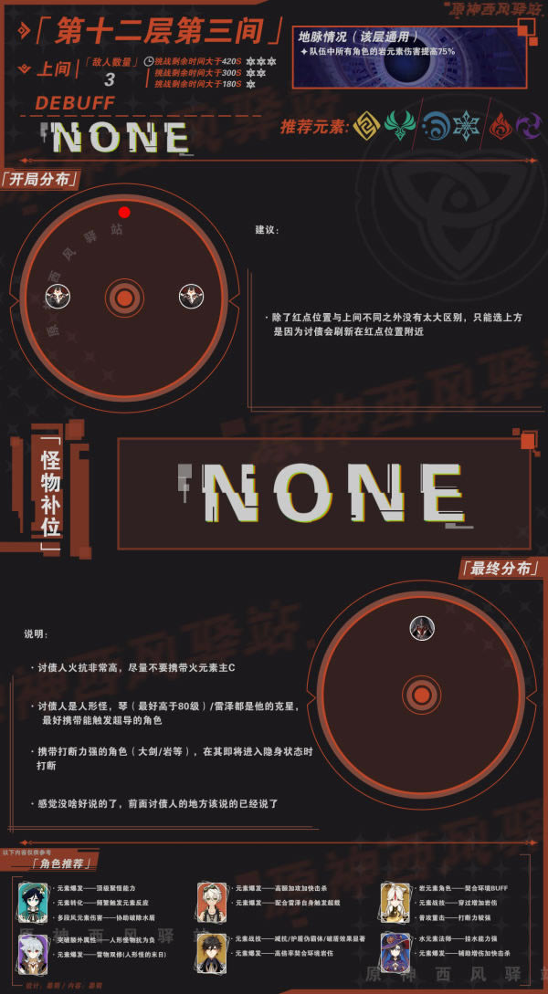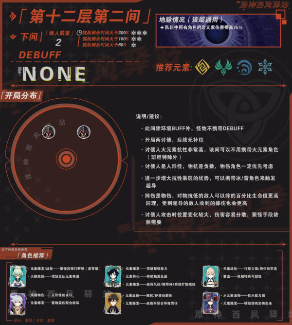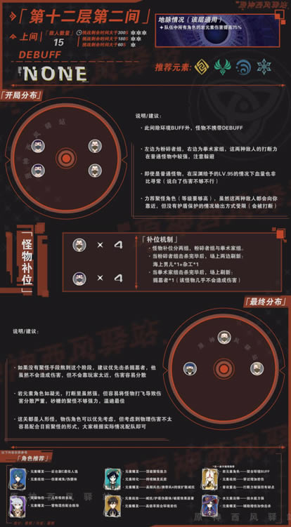 《原神》是由上海米哈游网络科技股份有限公司制作发行的一款开放世界冒险游戏,于2017年1月底立项,原初测试于2019年6月21日开启,再临测试于2020年3月19日开启,启程测试于2020年6月11日开启,PC版技术性开放测试于9月15日开启,公测于2020年9月28日开启。 原神1.3版本的深渊12层大家都是怎么过的呢?本次就为大家带来了原神1.3深渊12层怪物击杀顺序推荐与分析说明,非常全面的内容,想了解的朋友可以参考,希望能帮到大家。 1.3深渊12层怪物击杀顺序第十二层第一间上间