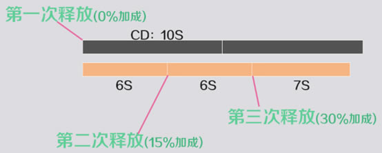 提高释放风轮两立后的7S内再次释放的风轮两立15%伤害,重复触发时叠加层数并刷新持续时间,最多叠加三层,即45%。 即使是0命,在计算条件不太苛刻的情况下,也能让第二击与第三击风轮两立受到15%和30%的伤害加成。(详细见下图)