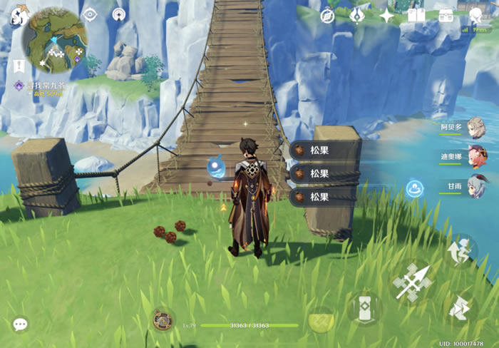 【白萝卜】推荐采集点4(小地图) 【松果】 【松果】一般在树下零星会有点,「轻策庄」的吊桥有很多集中的。