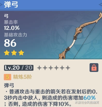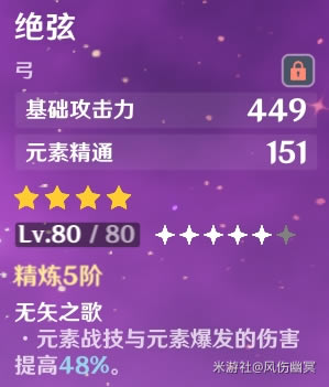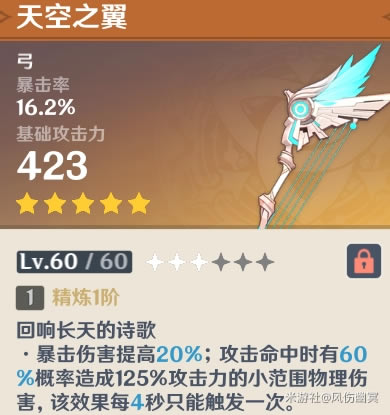 绝弦是工具人菲谢尔的标配,如果有天空弓就换,面板和暴击率都是好属性。圣遗物堆爆伤就好了。