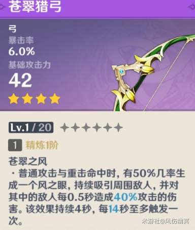 如果有一把苍翠猎弓会更爽,暴击率,自带聚怪功能就不用说了,触发后乖乖在原地给你打。微氪天空比较难精5,但是纪行武器谁都可以得到,高精度后也是不错的毕业武器。
