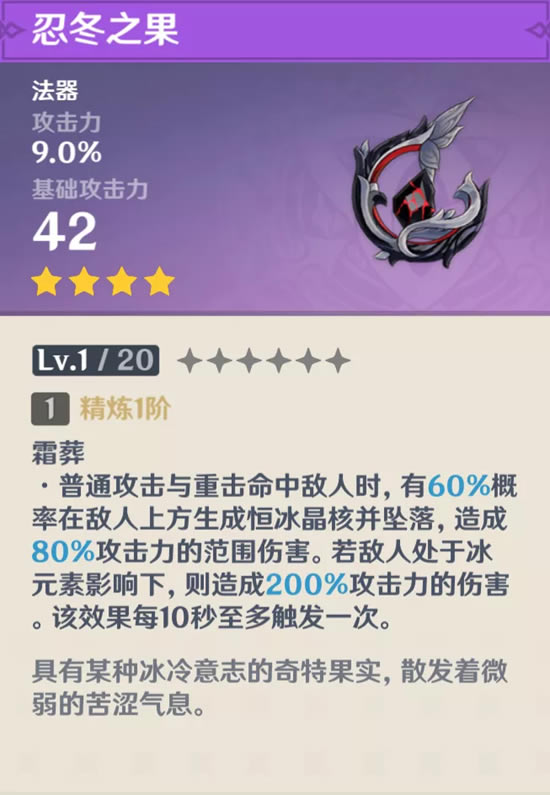 (1)获取方式: 方式1:解锁旧宫的8块石碑,在墓室中获得设计图纸,到铁匠铺打造 方式2:解锁旧宫的8块石碑,在墓室中点亮4个火盆,获得一把 (2)武器适配角色: 适合角色:雷泽,辛焱 ①雷泽 作为物理向输出的扛把子,培养后通常具有较高的物理伤害加成,高额的物理伤害加成也能提升武器特效掉落的冰块伤害,非常适合,并且副属性也是物理伤害加成,可谓量身打造,如果冰锥掉落是冰属性伤害,这波雷泽将起飞(可惜不是)。 ②辛焱 主物理+小部分火输出的角色,突破获得的攻击力加成也能增加特效冰锥伤害。辛焱大招爆发主要伤害为物理,可以吃到副属性加成,因而作为副C辛焱的爆发输出武器还不错。 适配角色的同星级武器横向对比 ①对雷泽而言: 横向对比0精古华,提升1.47%,也就是现有古华在佩戴的没有更换武器的必要,如果刚准备培养雷泽还没有好的武器的可以不打造古华转而打造星银。