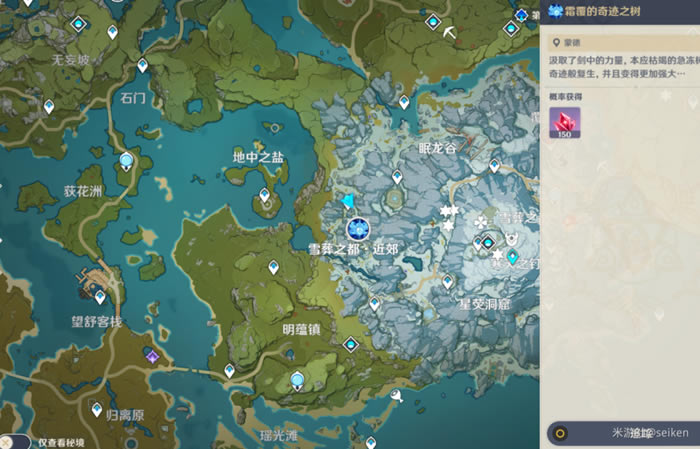 和之前几个活动任务一样,现在地图上出现了霜覆的奇迹之树坐标,这个点是固定的,不需要跑来跑去