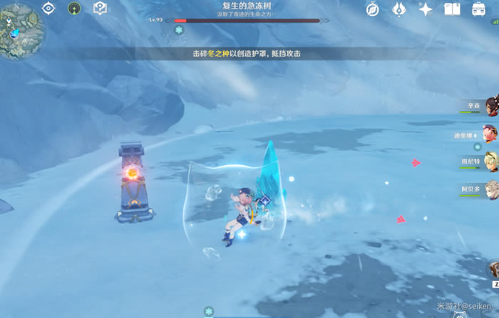 提醒一下,当把树打掉一定程度的时候,如果树还有血的话,就会进行一次几秒的范围攻击,需要在旁边冬之种创造护盾,抵挡攻击