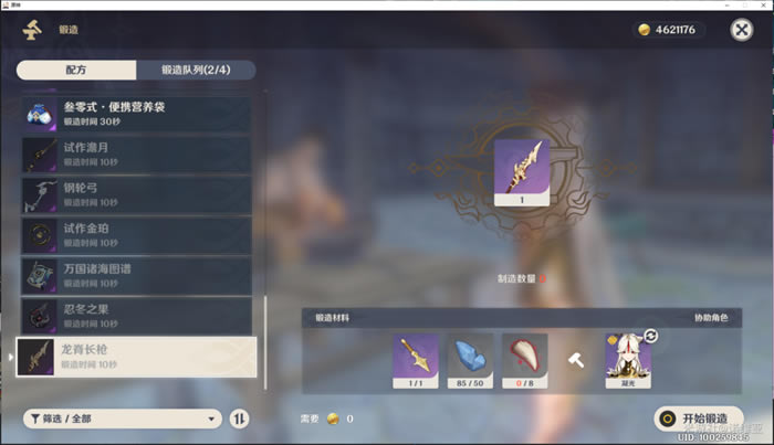c.龙脊长枪(锻造一把需要 50个)