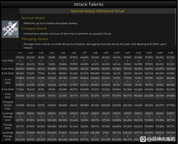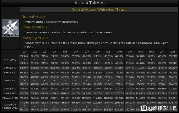 普攻对比,增加了新的重击动作,倍率由72/145/181上调为81/163/204,重击和下落攻击倍率有所加强,平a没啥变化