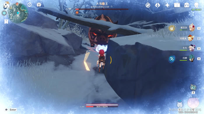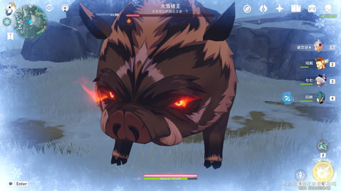 如何才能简单的击杀大雪猪王并且激发他的狂暴状态? 旅行者们可以将大雪猪王卡在出口处,然后注意躲避技能,把他打到一丝血,然后等,等他狂暴,狂暴状态非常明显,他的眼睛会变红,当发现这种情况时,旅行者就可以将他击杀了。 可莉被秒杀了好多次。