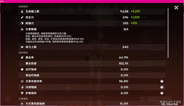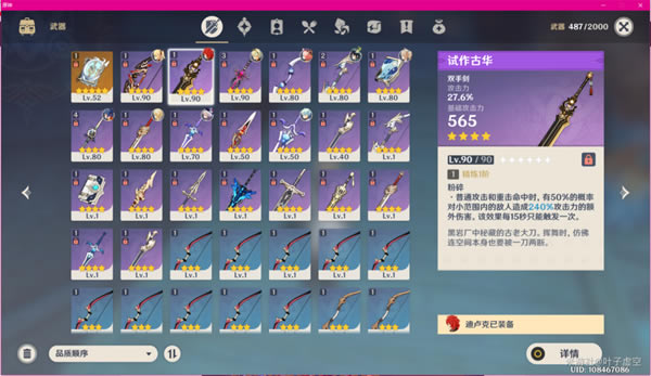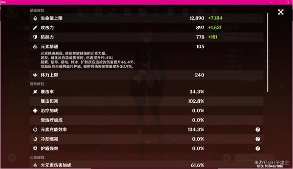 阵容的武器都是4星武器,圣遗物因为我比较非,芭芭拉是我双爆最高的角色,主C双爆都不高,香菱暴击头(扒我芭芭拉的装备),温迪爆伤头暴击率只有5%,其他的也没什么特别的,都是攻击力加成偏多,主要还是靠扒我芭芭拉的装备。 再贴主C迪卢克和香菱的属性图,其他就文字描述吧: