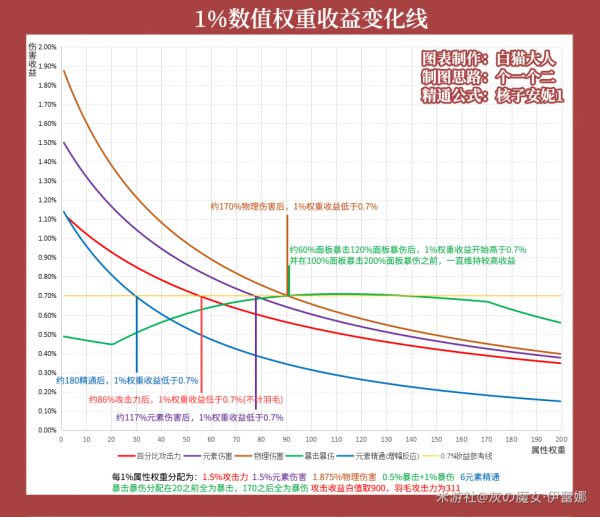 这里其实变量只有2个,分别是攻击力(A区)与增伤区间(B区) 默认公子属性为86%额外攻击力,90.4%属性增伤(46.6%+28.8%+15%) 携带水四:2934% 倍率的伤害(总伤害的49%)获得30%的提升总伤害提升收益约为7.7%(30/190X49%) 携带宗室二:1168% 倍率的伤害(总伤害的20%)获得20%的提升总伤害收益提升约为4.2% (20/190X20%) 携带角斗士二:总伤害收益提升约为8.4%(18/215)—9.1%(18/197) (前者为86%额外攻击力,后者为68%额外攻击力,佩戴2角斗士刚好达成攻击力理想权重分配。 两者均不计算羽毛的311固定攻击力) 结论 实战中会面对复数敌人,此时断流·斩的伤害会进一步提高,换言之能被水四增幅的实际伤害倍率占比会小于49%,因此不难得出结论: 一:角斗士2+水2是更泛用的选择。 二:水四稍微差一点点,但是也不差,副词条很好的情况下不用犹豫。 如果你的队伍中绑定班尼特这样常驻的加攻手段,那么水四的收益会反超角斗士。 三:宗室二是最不适合公子的选择,除非你的公子就打核弹,基本不站场。 计算过程 记满命公子技能等级为 普攻:Lv10 E:Lv12 Q:Lv12 默认远程弓箭蓄力起手挂断流buff,以单个敌人为目标,不考虑感电等剧变反应(圣遗物选择不影响感电伤害) (928%+240%=1168%近战大招伤害)+ 144%(E激发伤害)+(733.5%X4=2934% 4套近战平A伤害)+(136%X9=1224%断流·斩伤害)+(3.75X136%=510%四命被动伤害)+111.6%X N(断流破伤害,N为击败敌人数量)=5980% 记零命公子技能等级为 普攻:Lv10 E:Lv9 Q:Lv9 默认远程蒸发大招起手,以单个敌人为目标,同样不考虑感电等剧变反应 (643%X2=1286%大招伤害)+(122%E激发伤害)+(597.4%X4.5=2688.3 4.5套近战平A伤害)+(111%X9=999%断流·斩伤害)=5095.3% 以上就是逗游单机频道带来的原神沉沦之心圣遗物属性及伤害数据分析,更多精彩内容尽请关注逗游单机攻略频道>>> 本次分享游戏《原神》攻略。 |