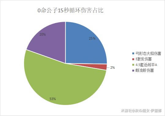 达达利亚跟行秋作为水系输出,主要伤害来源全部是水伤,完美契合。行秋的减伤比例还会额外收益于水伤加成。 两件套效果 获得15%水属性伤害加成 莫娜是一个比较特殊的例外,水2是莫娜的选择之一,但是并不必要。 莫娜可以通过自己的被动天赋将元素充能效率按一定比例转化为水属性伤害加成(180%元素充能效率的莫娜可以靠天赋获得36%水伤),大招的加伤效果还会带来高额的伤害加成(10级60%加伤),这个加伤效果可以视为属性伤害加成,在一个乘区加算。 这里我们只考虑主流的核弹莫娜打法(伤害来源基本全在大招上)那么这个大招能吃到多少B区加伤呢? 46.6%(水伤杯子)+36%(天赋转化)+60%(大招加伤)=142.6% 可以看到,莫娜可以很轻松的获得接近150%的属性伤害加成,在这种情况下,2水套的15%水伤加成所带来的收益对莫娜而言就不再那么可观了。 四件套效果 释放元素战技后的15秒内,普通攻击与重击造成的伤害提高30%。基本只有达达利亚会考虑。 结论 达达利亚目前最泛用的套装是2角斗士+2水套。后期(副词条很好)这可能也是公子的最适配装。 水四对公子的提升跟2角斗+2水相比没有明显优劣,考虑到四件套的成型难度,推荐选择2+2的配装(弓藏公子不要考虑水四) 公子15秒的理想输出 模拟一下公子15秒的理想输出循环可以得到如下两张图(计算过程在最后)