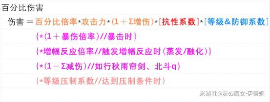 可以看到,无论是否满命,能够享受到沉沦之心四件套加伤效果的普攻伤害在公子总伤害中的占比都接近50% 我们以满命公子为例,进入圣遗物比较环节,默认携带水2的情况下 我们来比较一下水四,水2+宗室2与水2+角斗士2的区别 伤害构成公式
