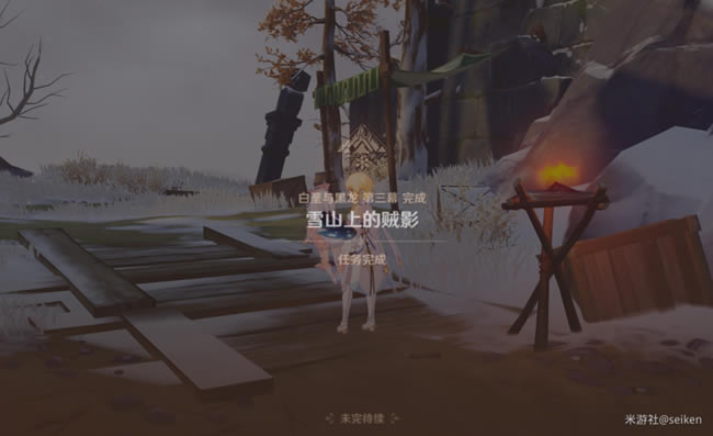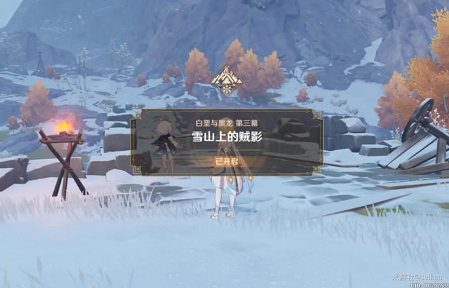 NPC对话完成后,白垩与黑龙第三幕【雪山上的贼影】便激活开启啦