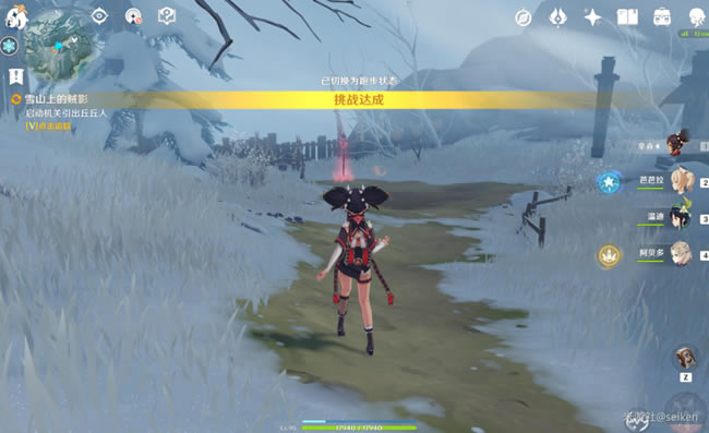 不过这次飞行挑战比较简单,没有任何障碍,直接飞就完事,挑战完成后启动机关杀丘丘人