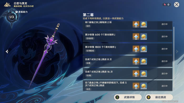 《原神》是由上海米哈游网络科技股份有限公司制作发行的一款开放世界冒险游戏,于2017年1月底立项,原初测试于2019年6月21日开启,再临测试于2020年3月19日开启,启程测试于2020年6月11日开启,PC版技术性开放测试于9月15日开启,公测于2020年9月28日开启。 原神白垩与黑龙活动是很多玩家关注的重点,本次就为大家带来了原神白垩与黑龙第二幕攻略大全,也是试剑之地打法阵容及腐殖之剑指南,非常全面的内容,想了解的朋友可以参考,希望能帮到大家。 白垩与黑龙第二幕攻略活动开启条件 完成前置任务「敌神者」即可开启活动。