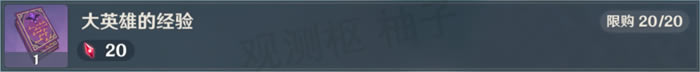 大英雄的经验:兑换一次需要20个「微光精粹」,一共可以兑换20次,共需要400个「微光精粹」。
