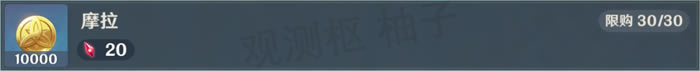 摩拉:兑换一次需要20个「微光精粹」,一共可以兑换30次,共需要600个「微光精粹」。