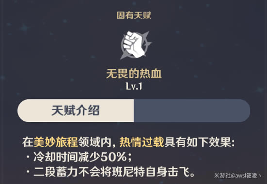 在美妙旅程领域内,热情过载具有如下效果;·冷却时间减少50%;·二段蓄力不会将班尼特自身击飞。 60级突破技能:q技能范围内e技能冷却时间减少点按只有2秒冷却,蓄力2段不会击飞自己