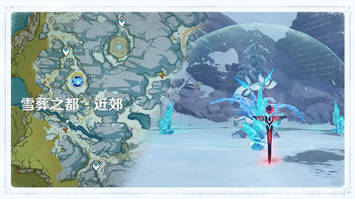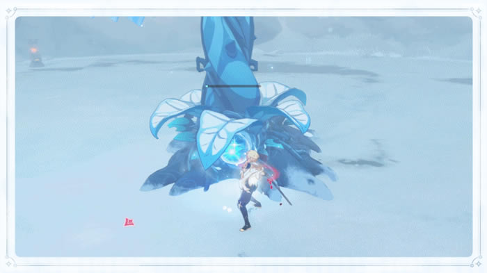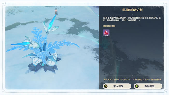 汲取了奇迹的生命之力,「复生的急冻树」的力量受到强化,旅行者们需要先击败附近出现的魔物,再利用魔物掉落的「深赤之石」破坏「凛冬之棘」,粉碎急冻树的护罩。