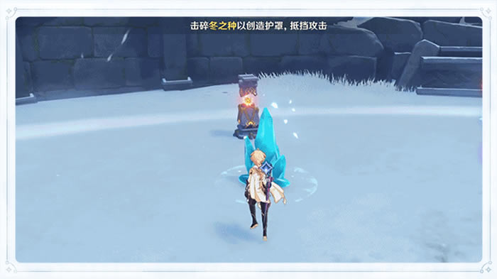 当急冻树的力量爆发时,会造成大范围的高额冰元素伤害。旅行者们可以通过击碎「冬之种」来创造护罩,抵挡攻击。